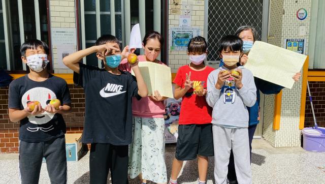 可以撐一個月,每天跳繩而且登記,有恆心、有毅力的孩子當然值得鼓勵 來!玉梅主任特別送你們藝人一顆梨山蜜蘋果。