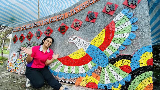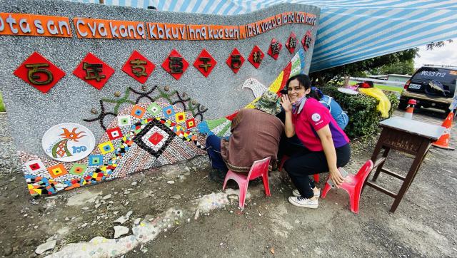 漂亮的杯子~感謝甘老師協助所有師生印製 全世界最美麗的校護就是堅持要在最美麗的百年校慶紀念牆前留影-搶頭香!