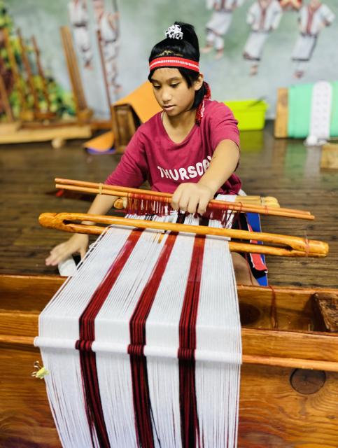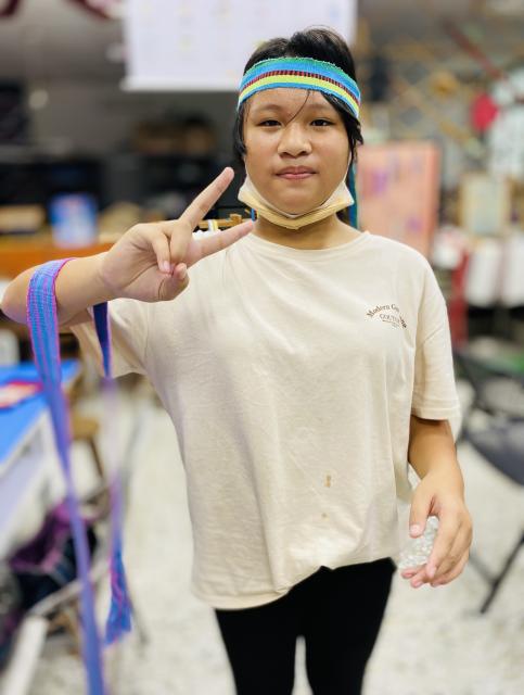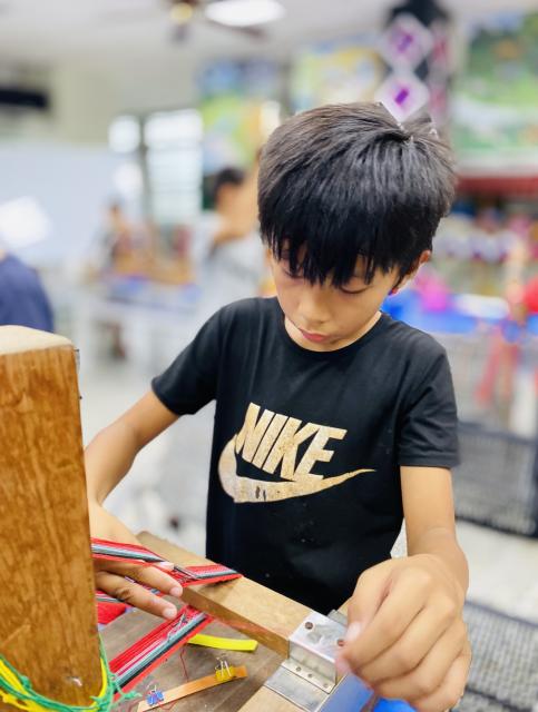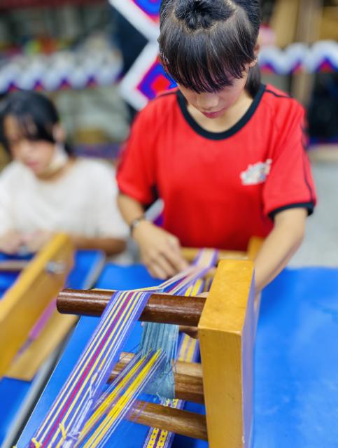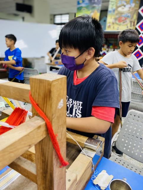 ● 111.11.15織布不是女生的專利 五甲幾個男生平時活蹦亂跳,嘴巴也沒閒著……,沒想到一接觸到織布,心竟也能靜得下來,無論配色或技巧都令人驚豔,很可以!