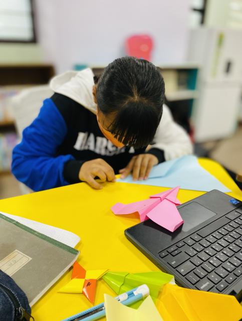 如何摺紙飛機,才能飛的最遠?空中停留最久?左手擲出、右手接?好好研究、測試一下! 結果最投入、最認真的是甘老師,關客觀著觀著,自己也變成孩子,飛在自己童年裡!