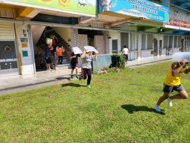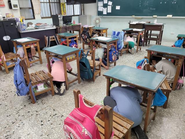 12:20用餐時,地震警報響起,孩子們迅速進行趴、掩、穩三動作,待地震稍歇,校長廣播,進行安全疏散至校園空曠處。 驚魂未定,三甲香蓮老師發現謝晴雙手抓著頸部,臉色難看,護士阿姨趕緊詢問,原來謝晴因來不及吞嚥而噎著,護士阿姨用哈姆立克急救法...... 一顆葡萄從謝晴口中吐出來,危機解除!