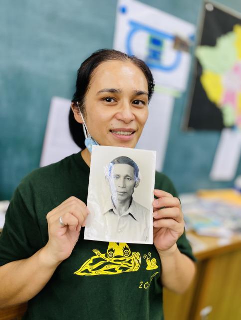 連辦公室小房間也安裝新的櫃子,於是我們開始整理多年來留下的史料古物。這一天整理照片,三個女人一人一疊,看呀看的,尤其是傑出校友慧玲護理師,這是......、那是......,忽然一張大大的、黑白的大頭照從一只舊舊的泛黃信封裡被抽了出來......