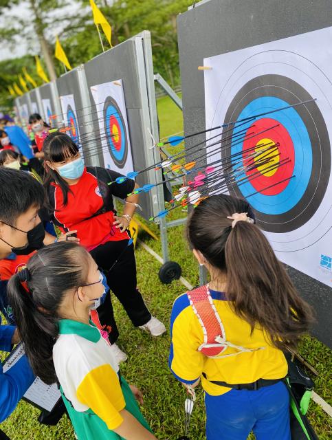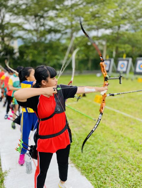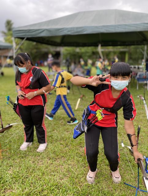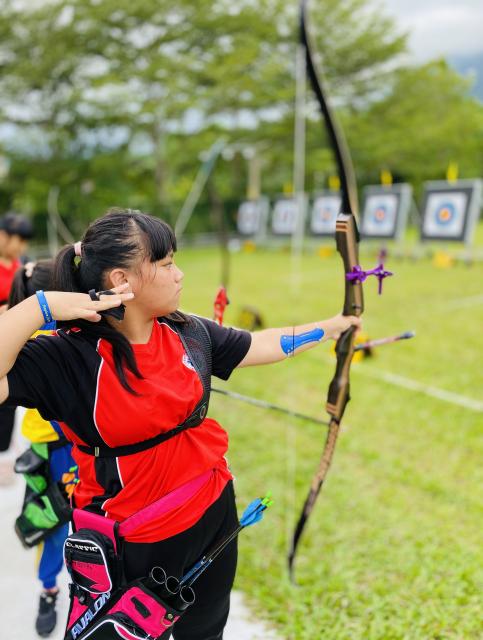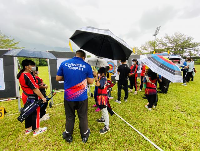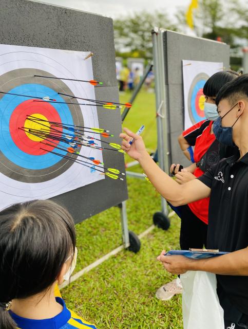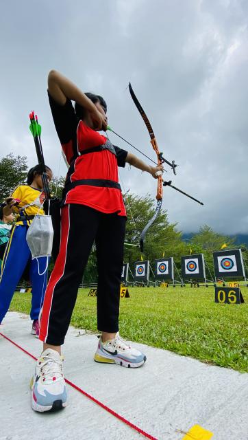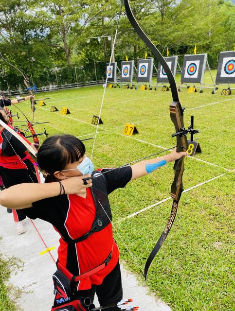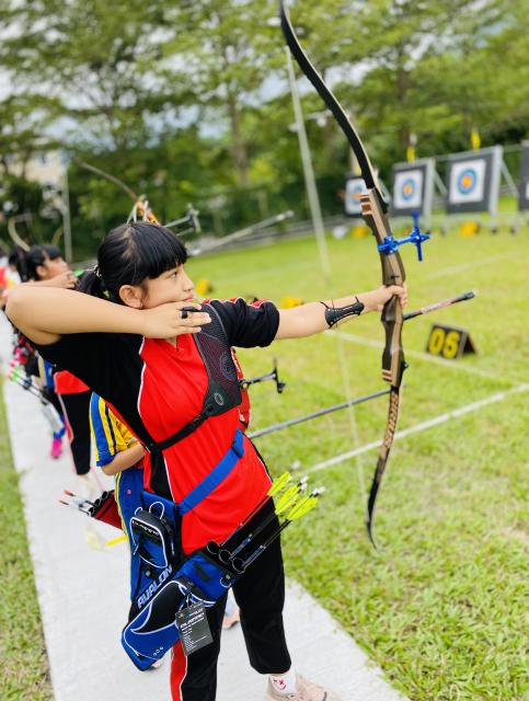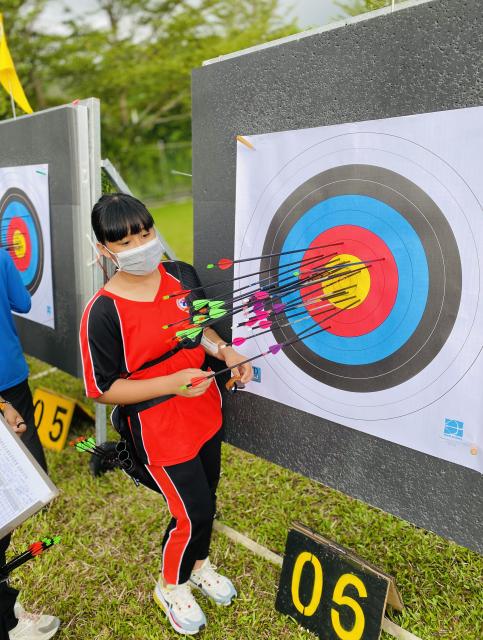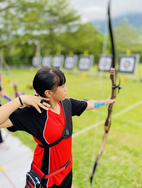 雖然有公開練習的時間,孩子們依舊難掩緊張心情,第一箭射出,抓住哪種感覺,咻咻咻,無不考慮,一次6箭,要六次才算一局,而今天比賽共兩局,如果滿分就是720分耶!