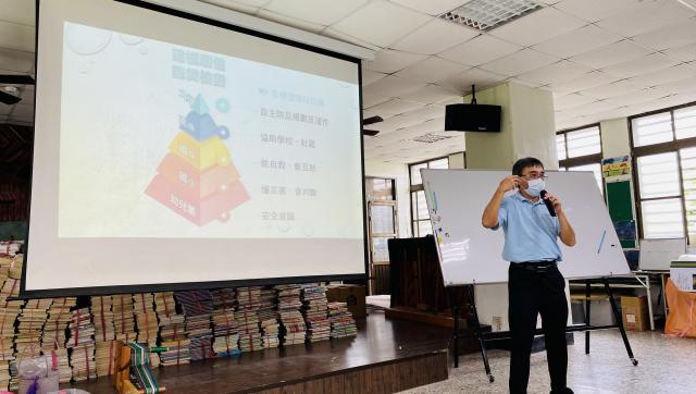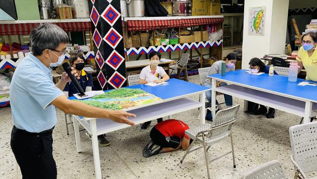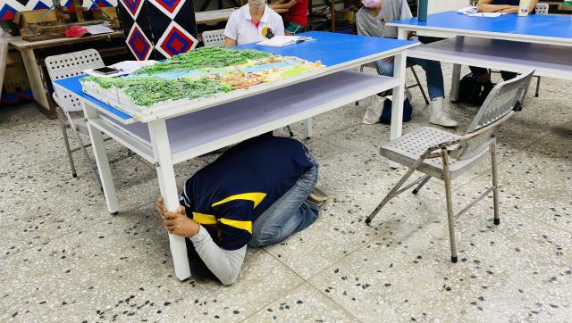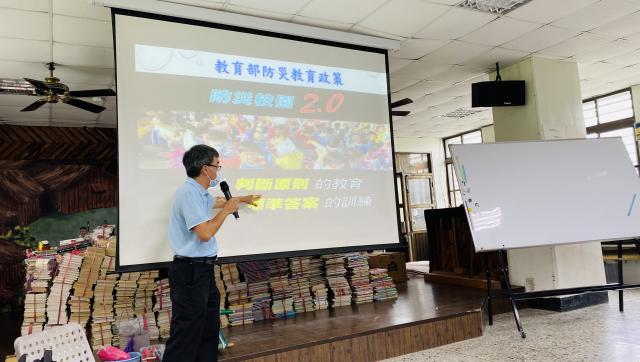 有請防災高手校長許傳芳到校來為老師們聊聊防災這件重要事。 減災、整備、應變、復原~要討論、變通,不管是生活或防災都要有韌性。 看到了嗎?程熹老師為大家示範了最正確的"趴"的動作。
