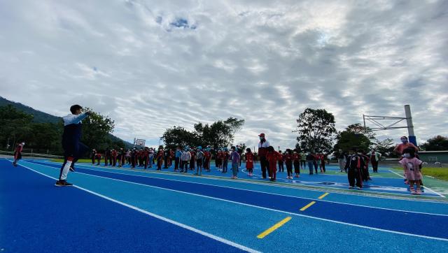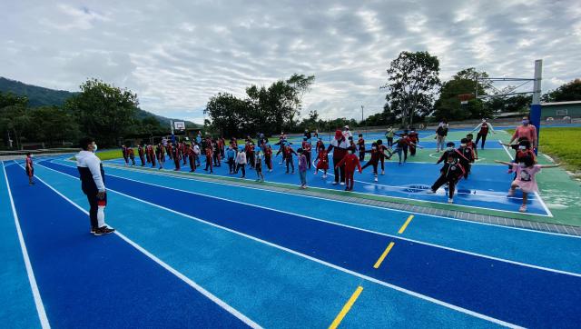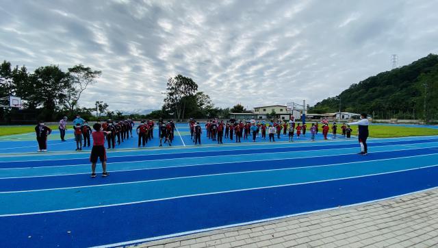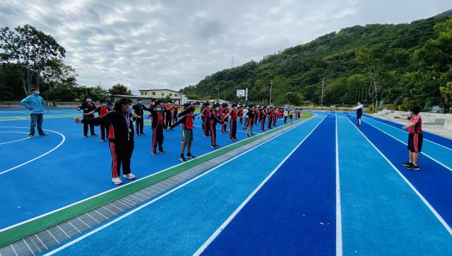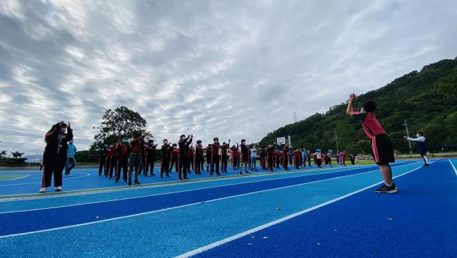 今天不一樣的是我們在藍色的海洋中做操喔!
