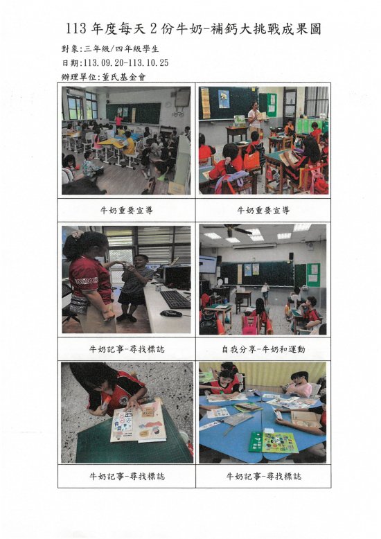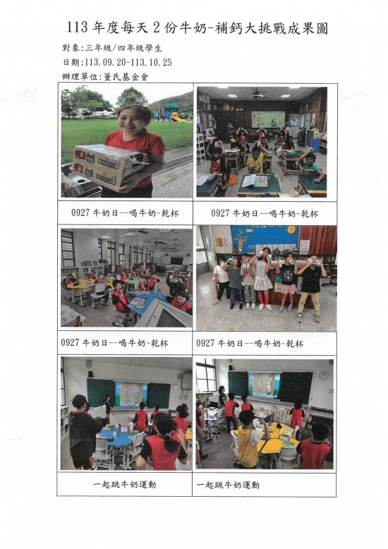 113學年度西林國小『每天2份牛奶-補鈣大挑戰』成果圖