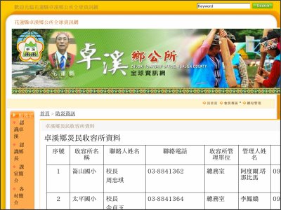 卓溪鄉災民收容所資料 - 花蓮縣卓溪鄉公所全球資訊網