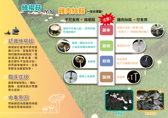 二、 | 衛福部食品藥物管理署近年接獲多起民眾自行採摘不明菇類,烹煮食用後出現嘔吐、腹瀉及手麻等天然毒食品中毒之症狀。 |