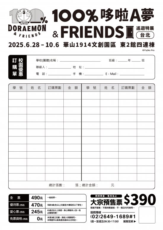 三、 「100%哆啦A夢&FRIENDS巡迴特展 台北站」基本資訊: