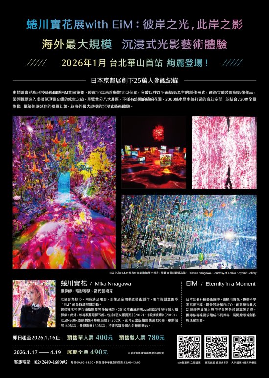 一、 蜷川實花被譽為日本最具代表性的當代藝術家之一,以鮮明奔放的色彩與獨樹一幟的視覺風格聞名國際,她的創作橫跨了攝影、電影、時尚、影像及空間裝置藝術等領域,開創出極具個人特色的「蜷川美學」。今年初在京都舉辦的《蜷川實花展 with EiM:彼岸之光,此岸之影》,以絕美光影與夢幻花景席捲全日本,短短兩個多月吸引超過25萬名觀眾入場,在社群上引爆熱烈討論,日本藝人及時尚、藝術圈名人爭相造訪,掀起前所未有的轟動。明年1月全新進化的《蜷川實花展 with EiM:彼岸之光,此岸之影》海外移展首站就在台北,展覽突破以往平面攝影為主的形式,融合影像作品、立體藝術裝置與EiM革新數位技術,打造出虛實交錯的沉浸式藝術空間。被譽為「色彩魔法師」的蜷川實花堅持以真實拍攝影像創作,不倚賴電腦CG生成視覺,透過鏡頭捕捉城市與自然景致的光影瞬間。透過展覽,學子們將對於當代藝術家蜷川實花有更深的認識,激發藝術與美感的潛能,而未受正式攝影教育的蜷川實花在攝影的道路上不斷突破蛻變最終取得成功的經歷,也能帶給學子們在各領域勇於挑戰自我的精神。