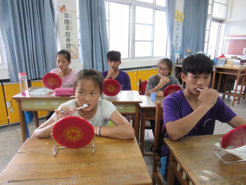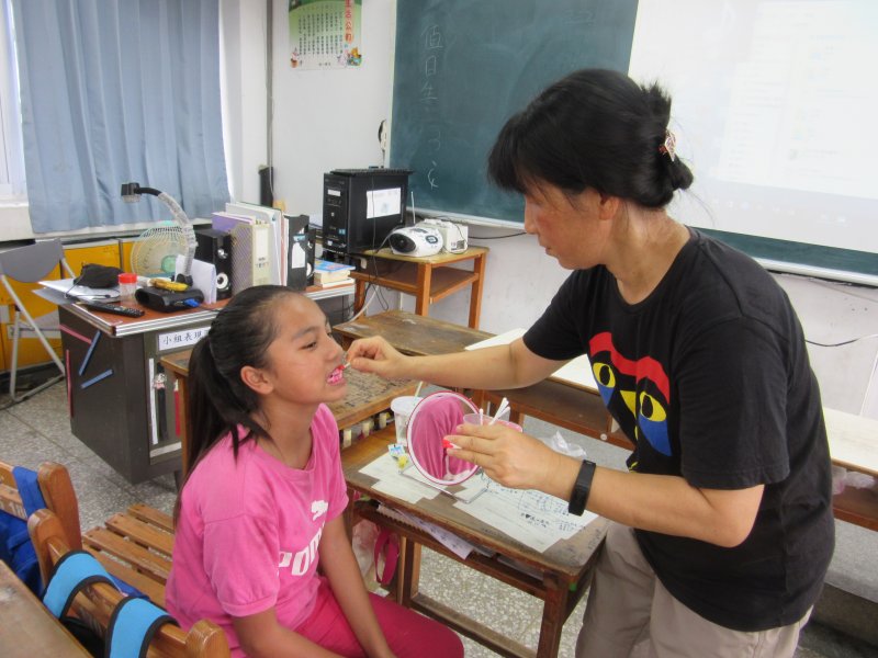 六年級潔牙比賽由班導師及惠敏師.護理師來評分