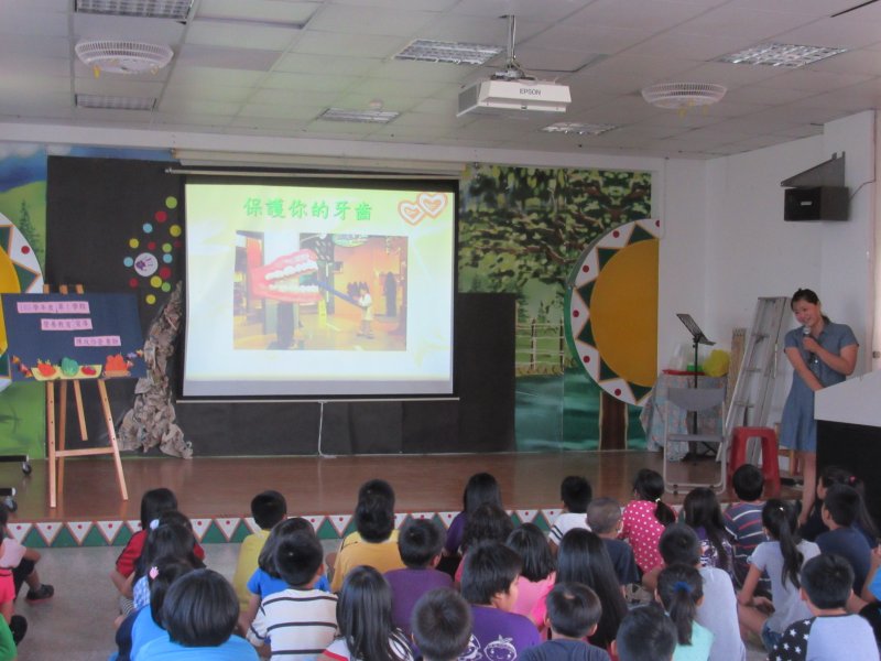 由校長介紹營養師後,陳玫伶營養師宣導[保護你的牙齒];這是很重要的議題;推行時有讓我很棘手的事情