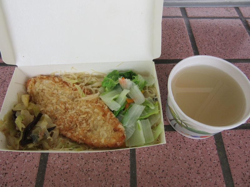炊粉特餐.魚排.炊粉配料.小白菜.糙米粥