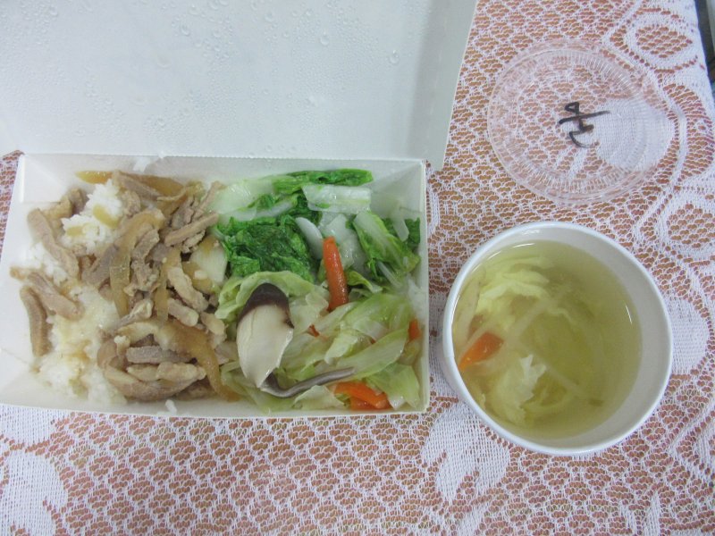 白米飯.京醬肉絲.毛豆鮮燴.小白菜.蛋花紫菜湯