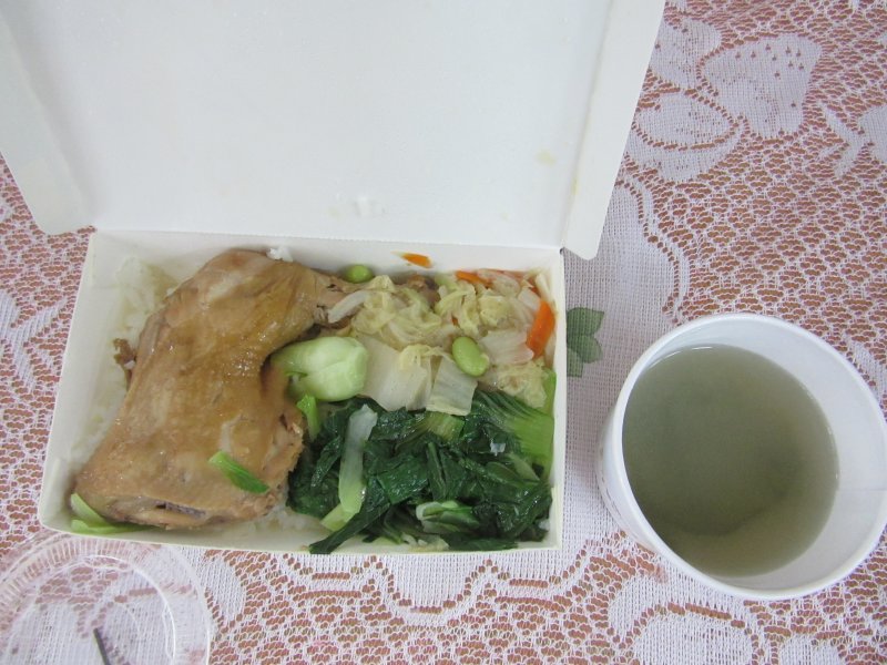 芝麻飯.美味大雞腿.毛豆白菜.青江菜.味増海芽湯