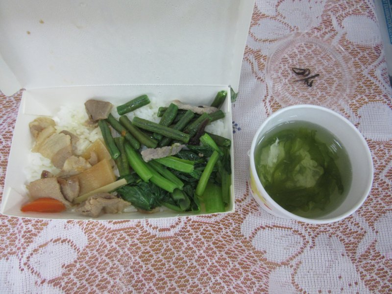 白米飯.京醬肉片.季豆肉絲.油菜.紫菜蛋花湯