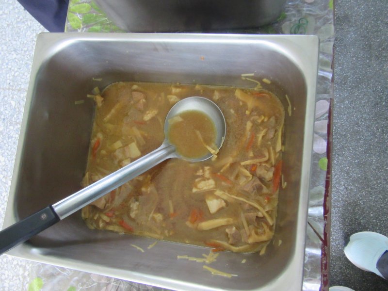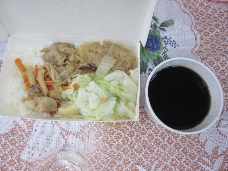 白米飯.筍乾肉干.螞蟻上樹.高麗菜.仙草湯