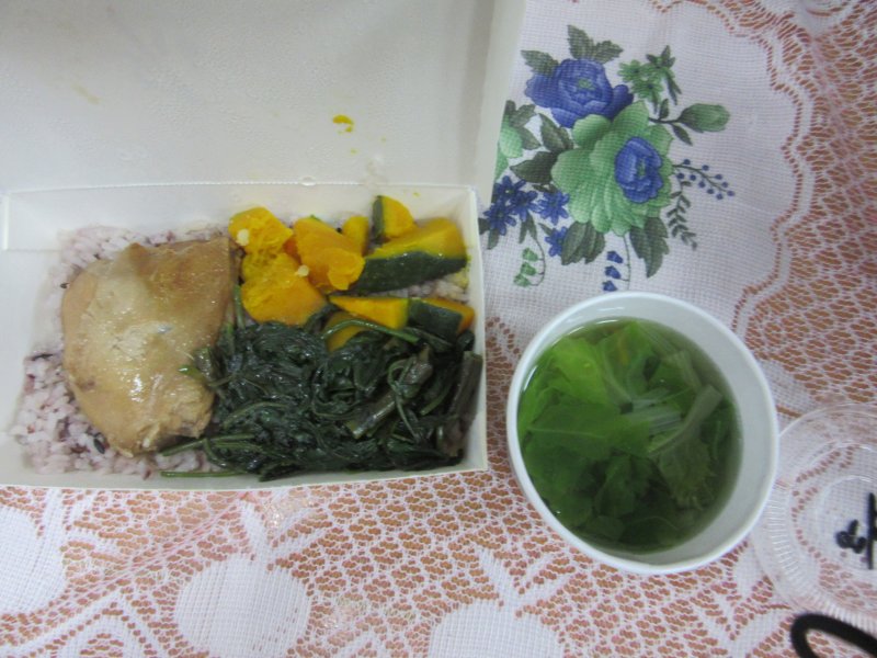 紫米飯.香滷腿排.絞肉時瓜.空心菜.青菜豆腐湯