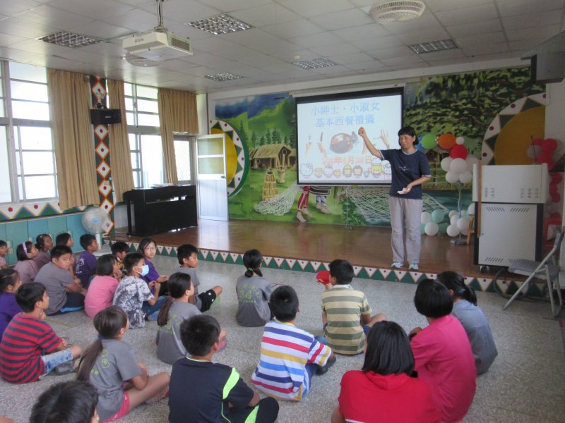 快期末囉!學校辦理[校長請吃牛排】活動,今利用時間與學童宣導吃西餐基本禮儀,從穿著、喝湯、吃麵包、吃牛排時刀叉使用方法,每班派出一位小朋友出來示範,希望大家能吃出健康吃出氣質