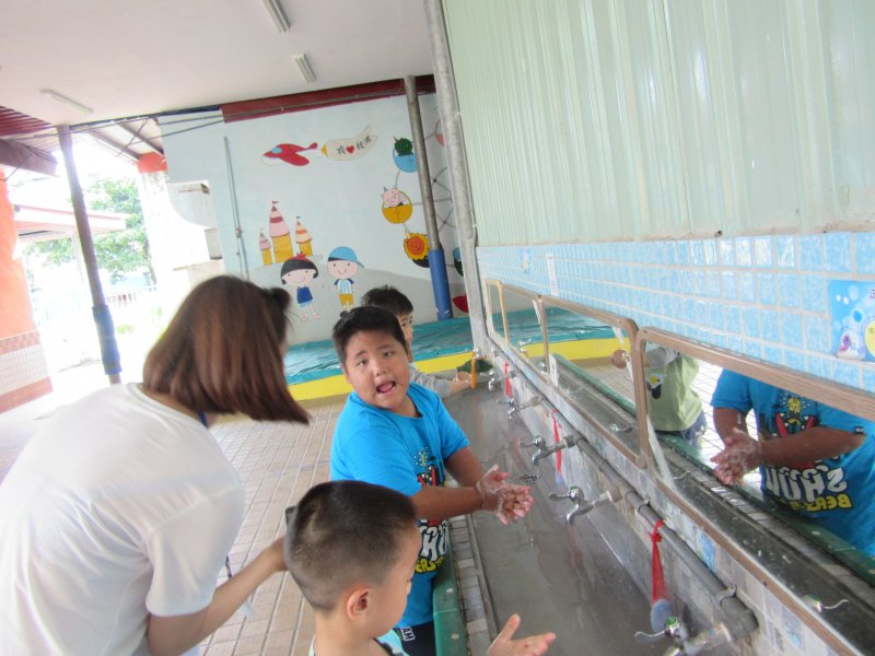 今天衛生所傳染病承辦人到校訪查;洗手設備及小朋友正確洗手熟棯度,國小部及幼兒園小朋友很棒都能熟知洗手五步驟濕搓(內外夾攻大力腕)沖捧擦後會用乾淨毛巾擦手