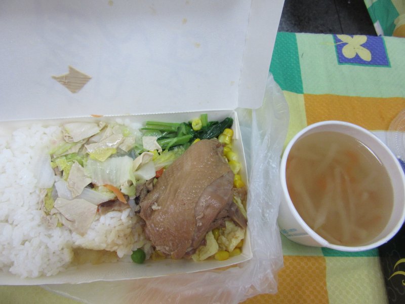 燕麥飯.美味大雞腿.豆皮白菜.油菜.榨菜肉絲湯