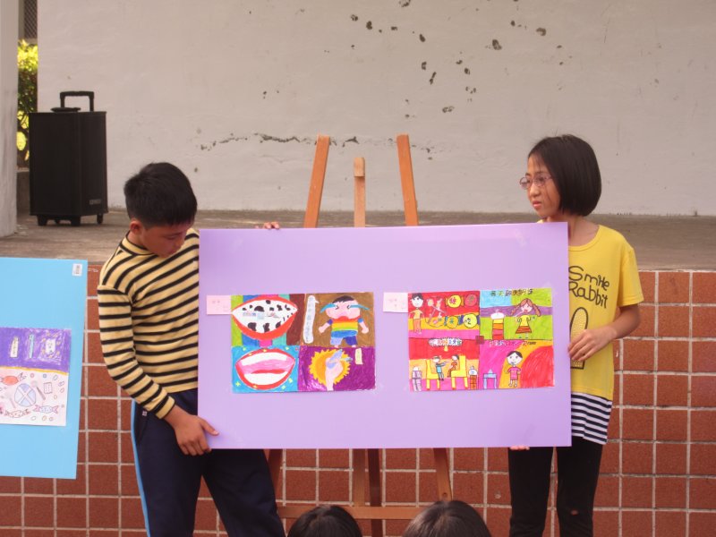 三至六年級學生用四格漫畫呈現口腔保健重要性,頒獎時學童分享自己的口腔保健方法,最終希望80歲還有20顆真牙