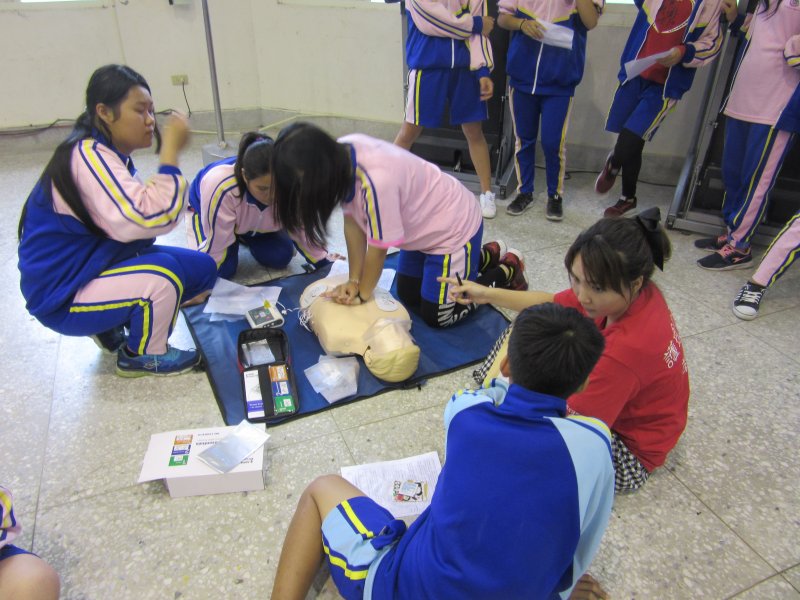 每學年的教職員及六七年級學童都必須在各校護理師的教導下學會CPR+AED,再由中心學校安排由各校護理師協助認證