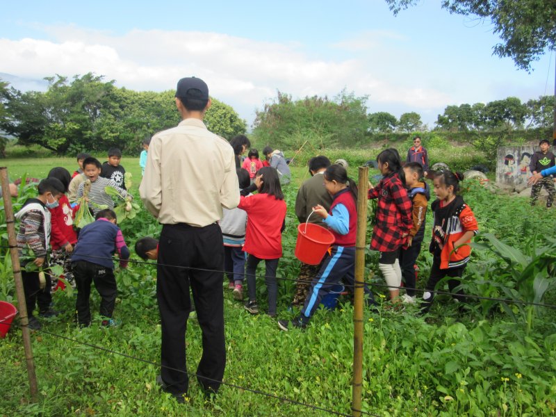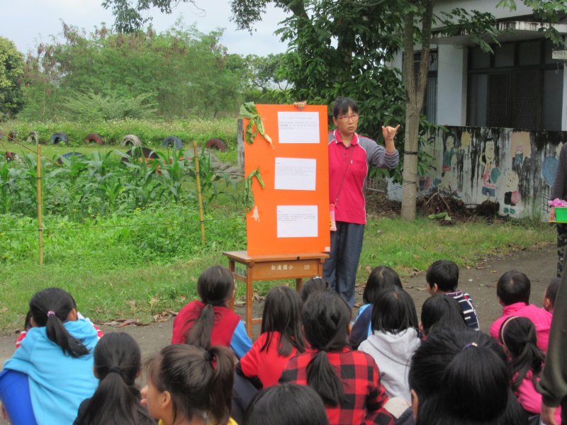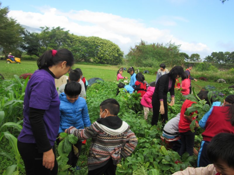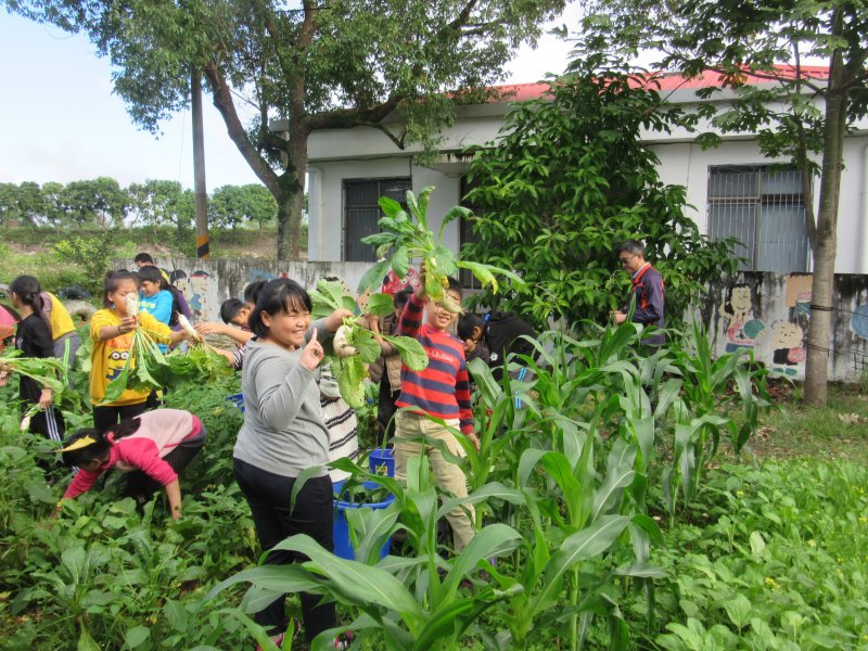 從事有機栽種志明師到校教導本校師生栽種白玉蘿蔔,開學時種子播種到期末採收,採收時護理師講解蘿蔔營養成分,翠蘭師教導如何做醃蘿蔔,總共收成60公斤大小小蘿蔔,分送給每位小朋友及每位教職員工