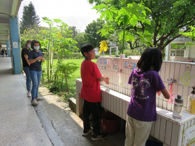 衛生所每學期都會到校抽測學童洗手技巧及洗手台是否有放置香皂及張貼正確洗手步驟