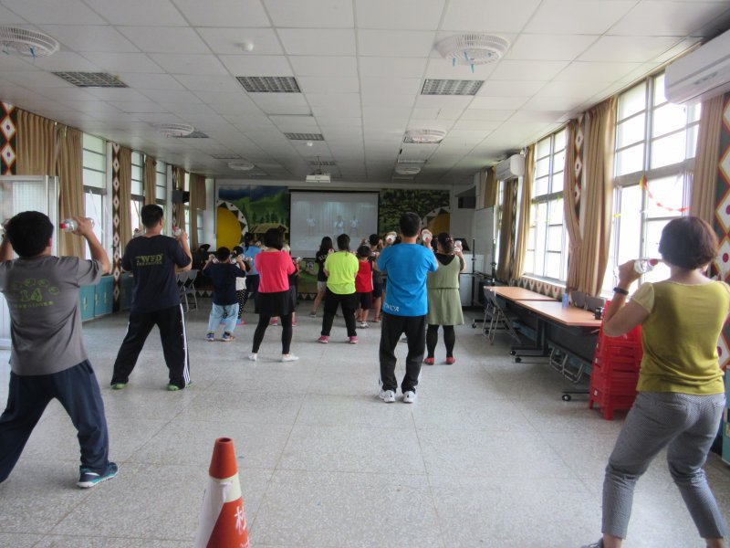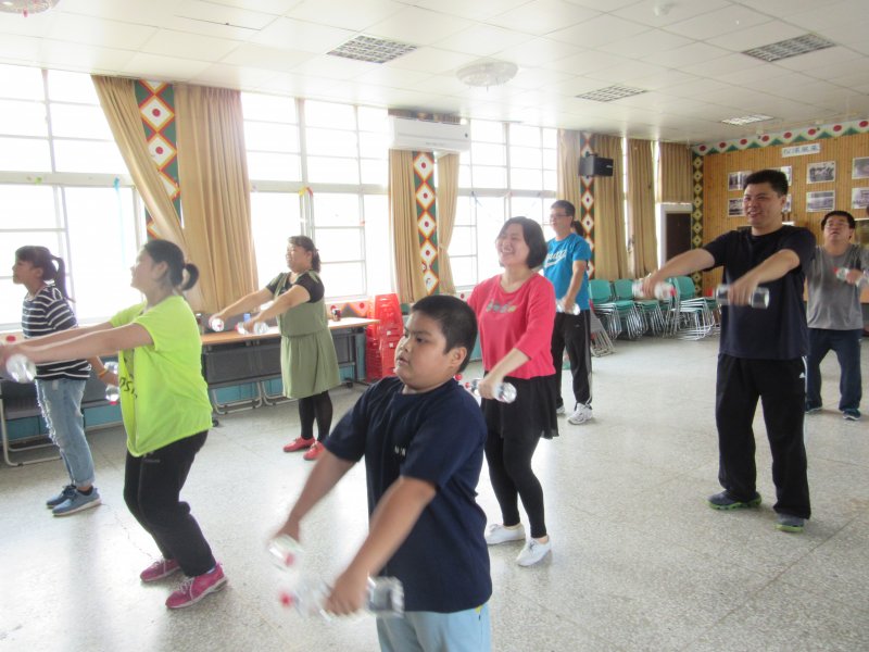 配合衛生局減重班推行跳啞鈴操,達到心跳加速扭動筋骨;讚啦~