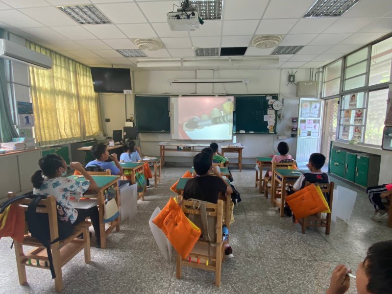 吃完午餐後各班導師播放貝氏刷牙法影片小朋友坐在自己的位置做潔牙