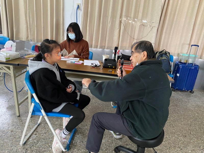 1121221東區兒童視力保健中心許明木醫師到河東地區協助視力不良孩童做視力複檢及免費配鏡