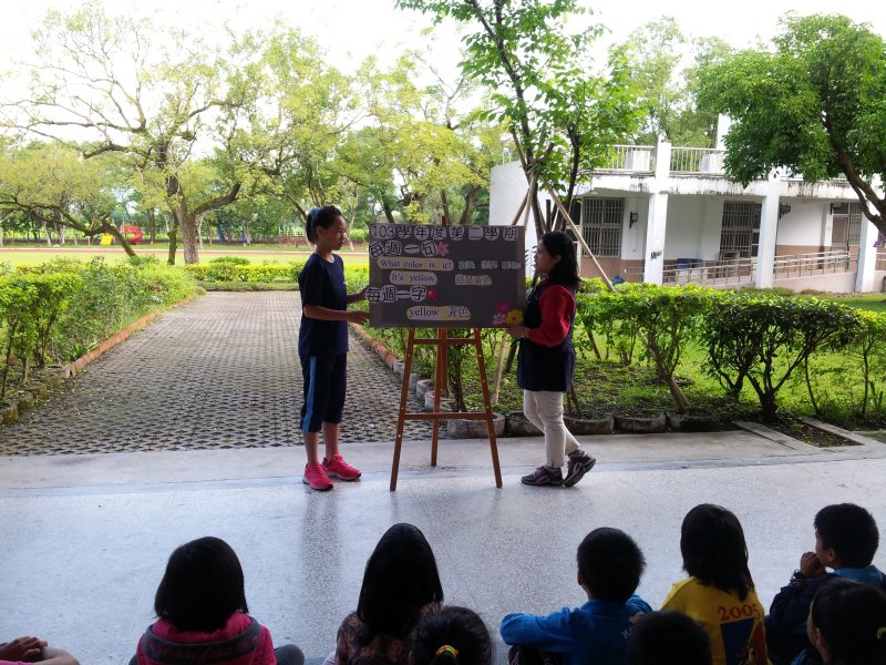 每個禮拜一是每週一句、一字時間,除了老師上台講解外,孩子們也利用課餘時間練習上台說話,增加英語能力與自信心!