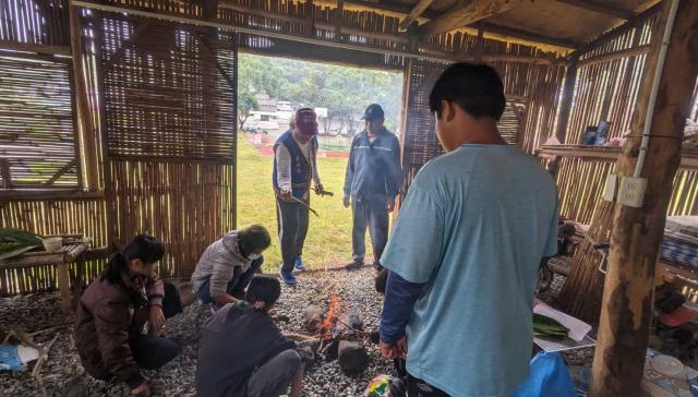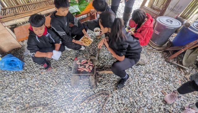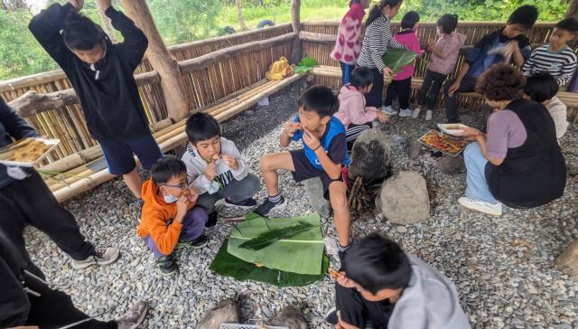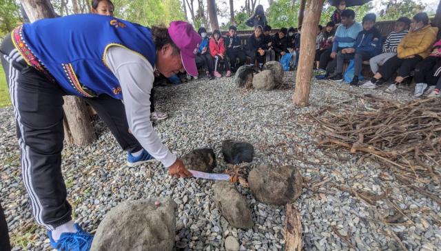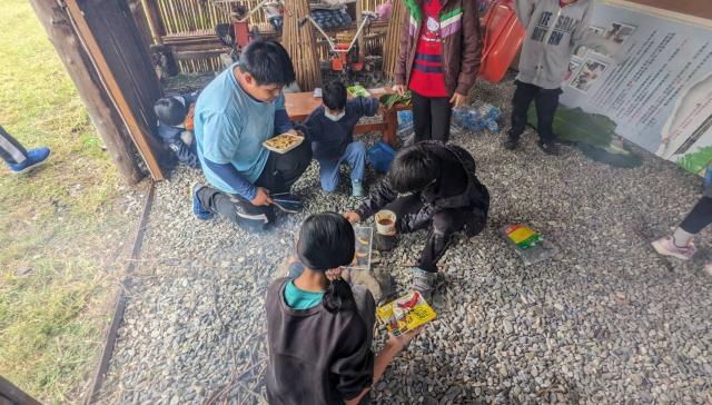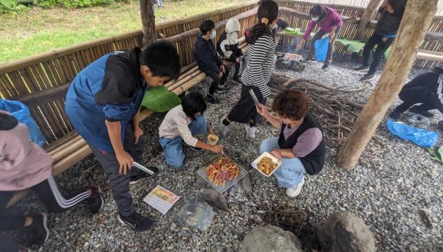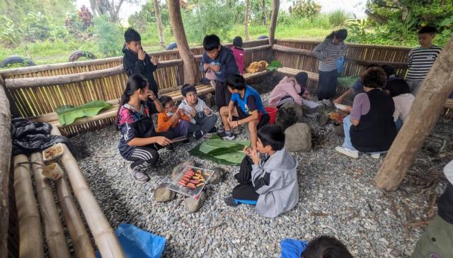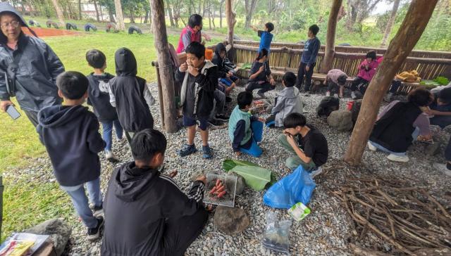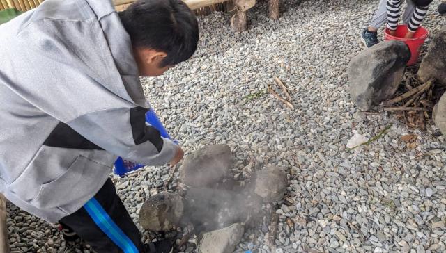 原住民防災—山上求生 一、 參加人員:一到六年級學生與老師 二、 地點:松浦國小家屋 三、 時間:112年12月1日 四、 課程目標: 1. 上山能透過分工合作完成烤肉 2. 學習到烤肉中會使用的阿美語如:爐子、木材、肉、器具等 3. 烤肉完成後能整理好場地 五、課程內容: 1. 製作爐子--四個石頭爐子 2. 取材 3. 生火 4. 烤肉 5. 使用山上的物品來盛裝烤肉物品--月桃葉 香蕉葉 和姑婆芋的葉子 6. 享用美食 7. 整理環境 8. 學習族語 9.用火安全--前先要將地面的樹枝樹葉和草整理掉避免被燒到。烹煮完後要用水滅火並確認火已經熄滅並將灰燼掩蓋,才能離開