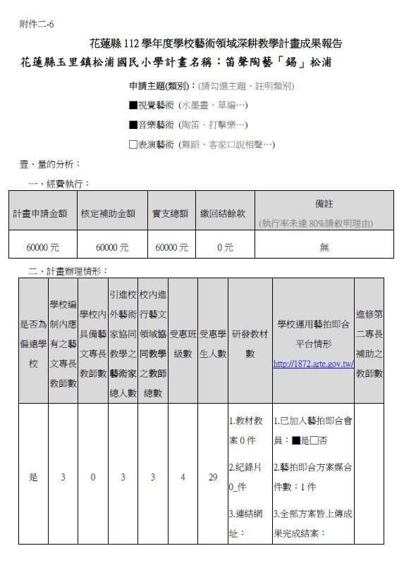 112學年度學校藝術領域深耕--松浦國小笛聲陶藝「錫」松浦
