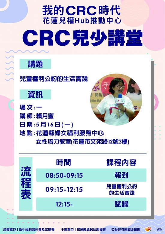 一、隨函附上活動報名簡章、宣傳海報,協請貴單位公布講堂 資訊並派員參與。 二、配合政府防疫政策,活動辦理期間遵守防疫規範,參與活 動者需全程配戴口罩、進場採用實聯制、維持社交距離 等。 三、各場次報名人數:限20名,額滿為止。 四、線上報名網址:https://bit.ly/3rAdOVu 五、活動專線:03-8313523 林專員。