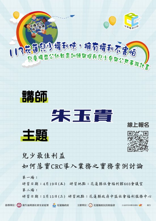 衛生福利部-『「花蓮兒少權利俠,擁有權利不害怕」兒童權利公約教育訓練與提升兒少參與公共事務計畫-CRC講堂