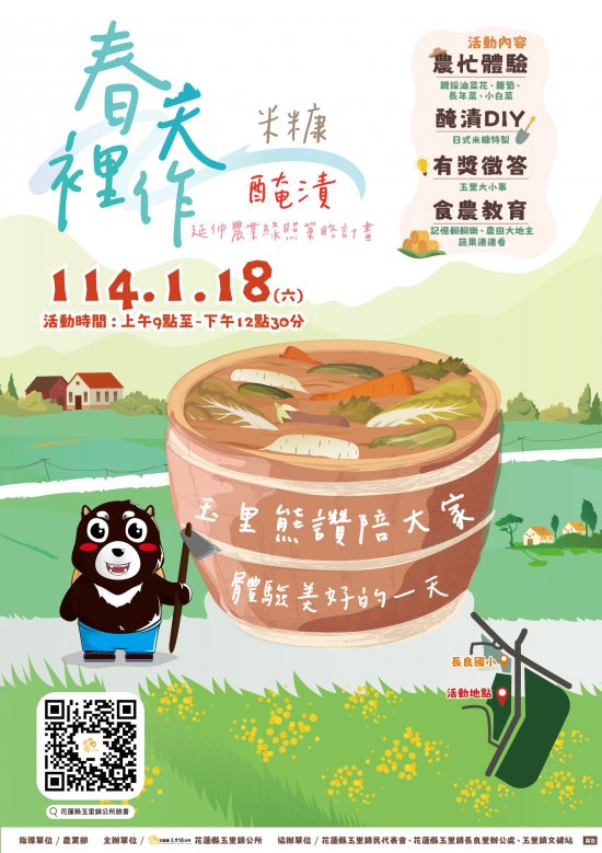 為營造歡樂過年氣氛,推廣本鎮優質且安全之農特產品,並提供民眾食農教育環境,訂於114年1月18日假長良(永良段846地號辦理採油菜花、拔蘿蔔及米糠醃漬活動。