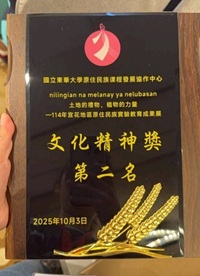 郁琦老師在第2天的活動中,代表學校分享本校工藝課程-「編織知識」。她以課程設計理念出發,連結族群對於香蕉的應用,透過口傳故事讓學生對織具有更多的想像與認識;在手作過程中,引導學生反思為什麼香蕉絲能夠被長期保存,並學會以細心與耐心對待自然媒材,從而創造更多文化藝術的可能,這正是學校在文化課程中給予孩子們的重要養分。最終,學校團隊也榮獲『文化精神獎-第二名』殊榮,這份成果要感謝郁琦老師、玉妃老師及全體新社團隊的協力,因為有大家的共同努力,才得以再創教育奇蹟。