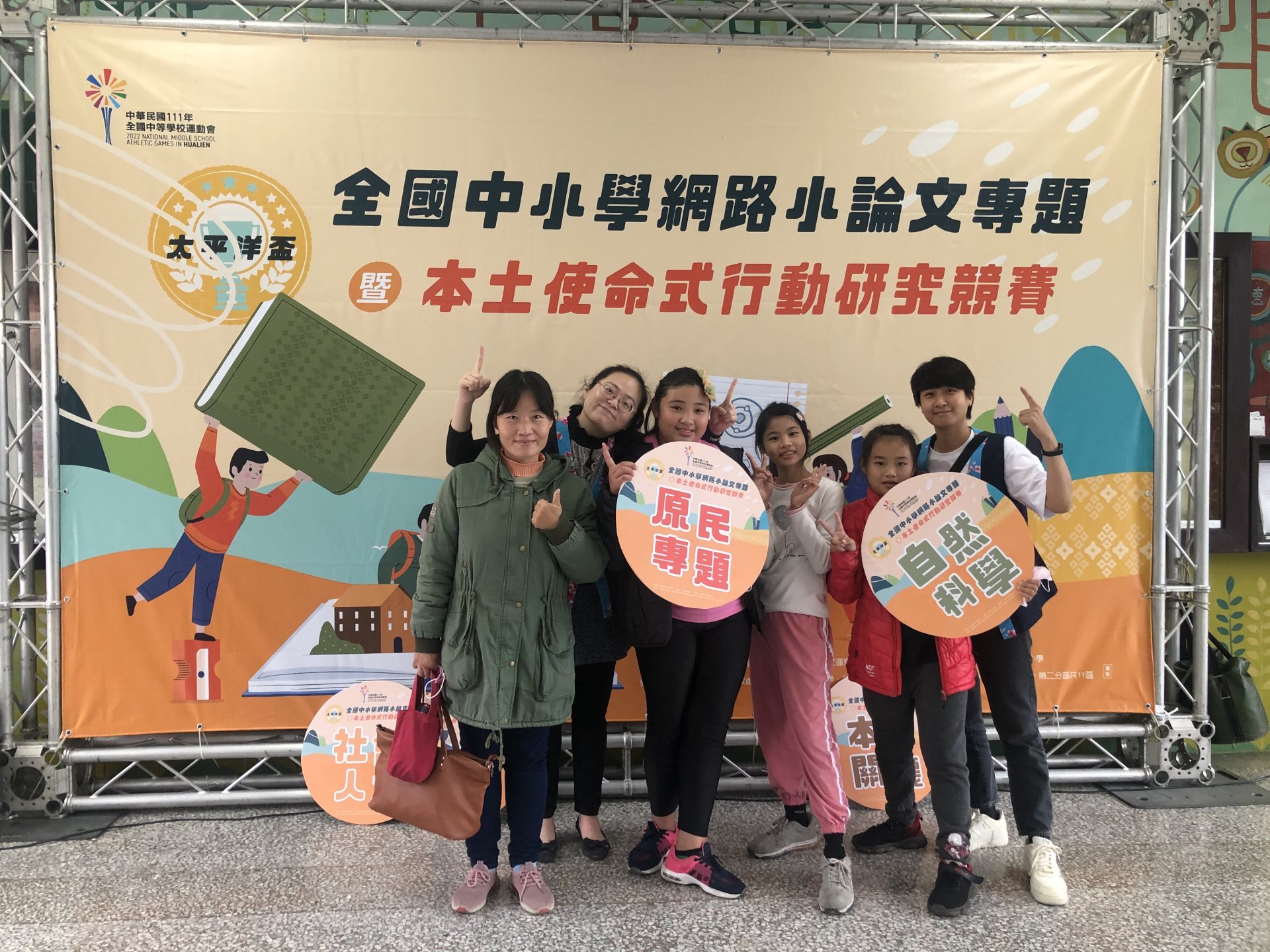 本校陳品頤老師、曲家芸老師帶領五年級林家綺、潘姿廷、林薇華及余勇俊同學,榮獲「太平洋盃110學年度全國中小學網路小論文暨本土使命式行動研究競賽」國小組-E組原民專題銅牌!!!
