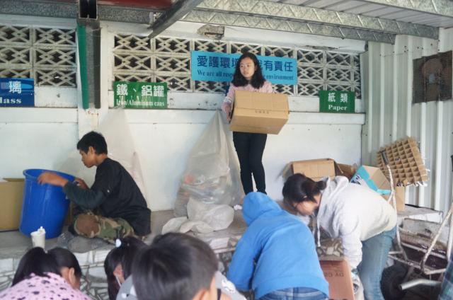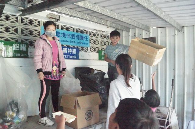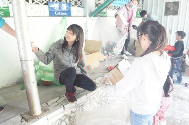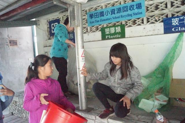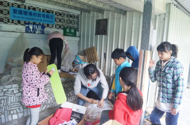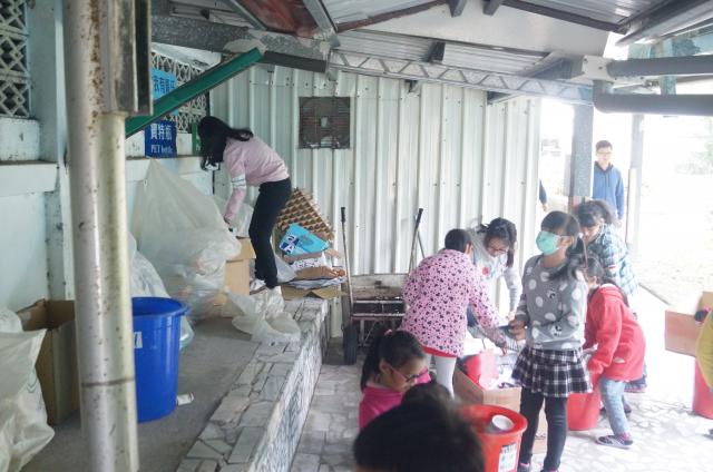 每週五課間活動,由晴雯老師及環保小局長指導,帶領各班環保小天使進行資源回收工作。