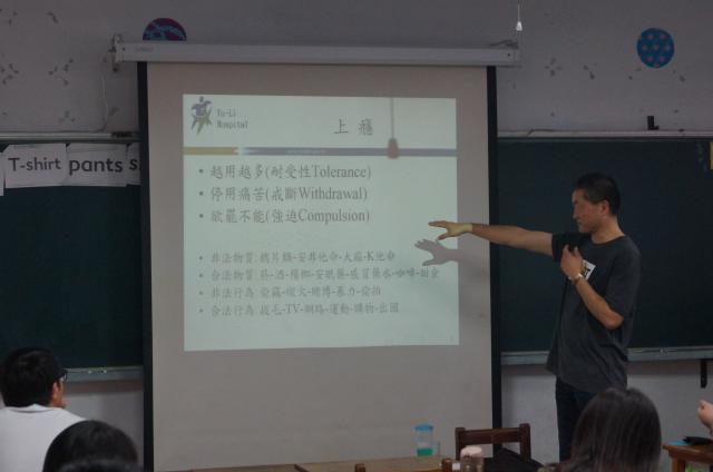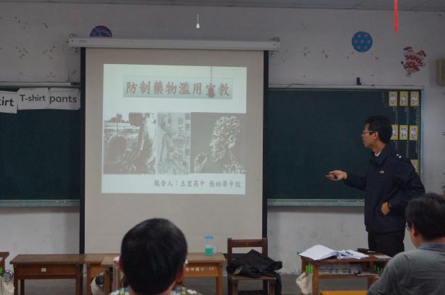 由玉里醫院精神科孔繁錦醫生擔任講師,向全體教師說明毒品對人體的危害!