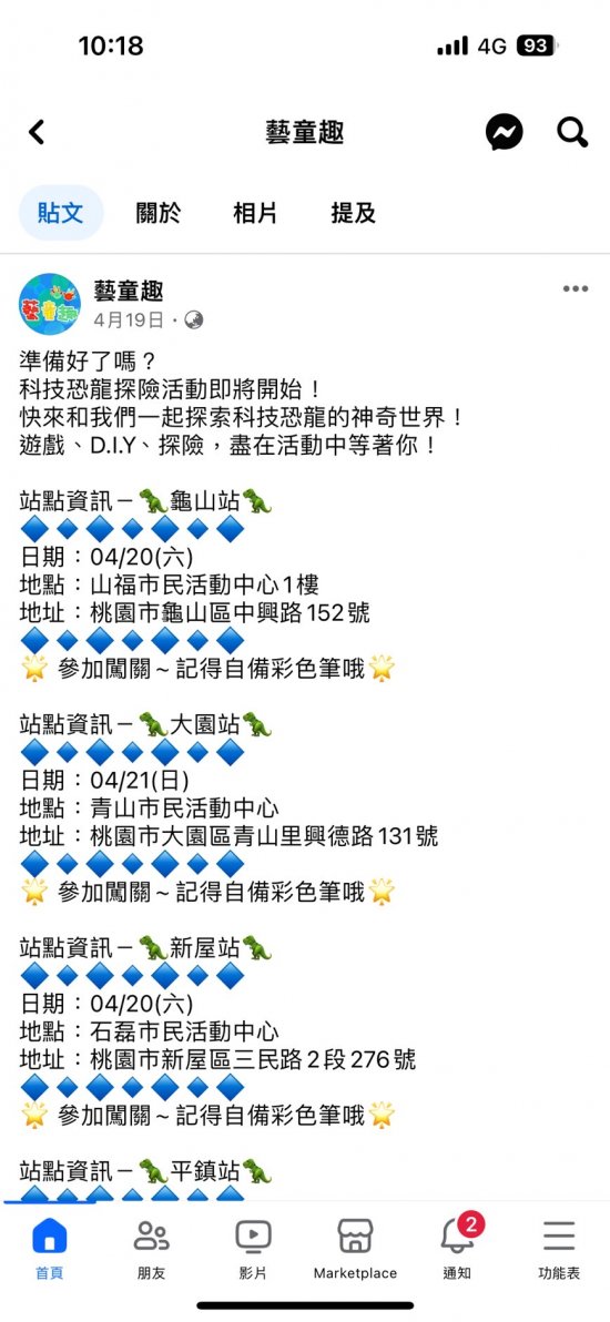 | 四、 | 因臺中市政府人員查詢系爭業者建置之FB「藝童趣」,初步發現該業者之行銷地區並不限於臺中市,尚於桃園市、臺南市...等地亦均有借用里民活動中心辦理彩繪活動之紀錄,其行銷範圍似遍布全臺,故特函知全國各地方政府,建請轉知本府所轄公所,審慎過濾租用公有場地者之租用目的,並加強事後確認租用之實際用途;並請提醒學校對於非公家機關舉辦之親子活動應審慎把關,勿輕易協助宣導或推廣,以避免有心人士藉機營利,間接損及政府或學校之形象。 |
