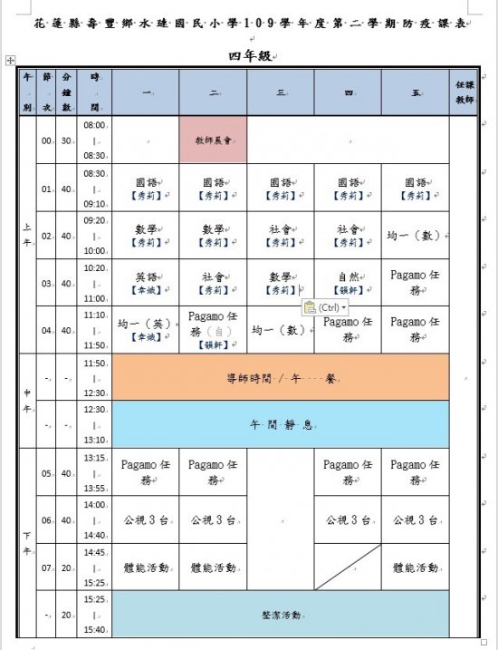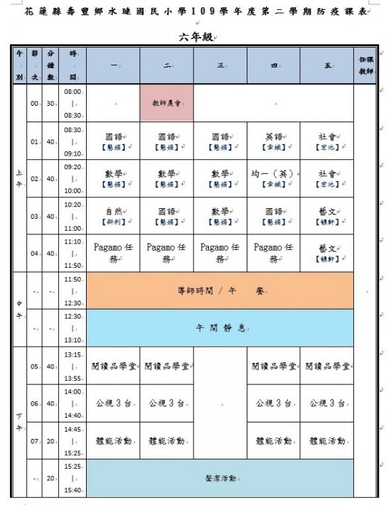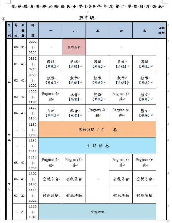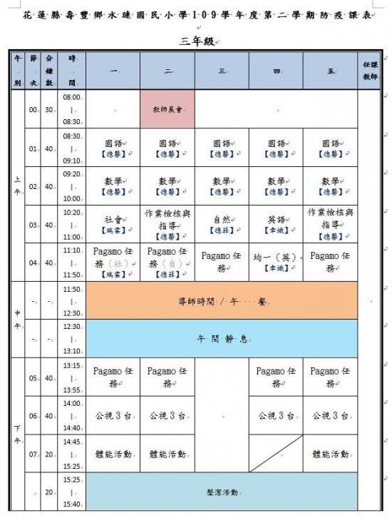 水璉國小疫情期間課表