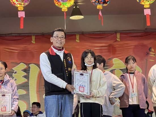 1140212(三)本校學生在花蓮縣114年元宵節花燈比賽中展現優異表現,在彩繪燈籠競賽中屢創佳績。國小中年級組由田馨同學榮獲第一名、方玟欣同學獲得第三名的殊榮;國小高年級組則由鄧詠琳同學奪下第一名,為校爭光。 指導老師:陳楊淑曾主任