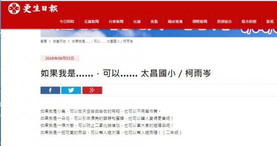 恭喜~二年忠班柯雨岑更生日報投稿作品分享
