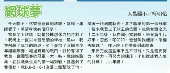 恭喜~六年孝班柯明佑寫作刊登更生日報
