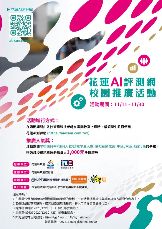 - 檢送活動海報一份;如有疑義請聯繫安普騰科技,電話:0922162899或信箱:upturnAI@gmail.com
