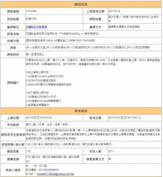 轉知~花蓮創客教師初階課程研習,歡迎老師踴躍報名參加
