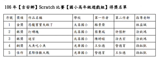 恭喜~本校參加106年度「瘋資訊Scratch動畫程式設計」榮獲佳績。